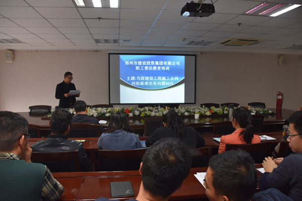 11月30日下午,根據《鄭州市人民政府國有資產監(jiān)督管理委員會關于印發(fā)鄭州市國資系統(tǒng)2018年“12·4”國家憲法日集中法治宣傳活動方案的通知》要求,為弘揚憲法精神,建設法治鄭州,集團公司在25樓會議室開展了《建設工程施工合同糾紛疑難實務問題》解讀培訓活動。本次教育培訓活動為視頻培訓,培訓課件主講人為袁華之律師,集團公司80多名員工參加本次活動。
